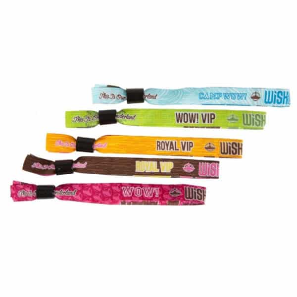 Braccialetto in stoffa ricamato Mons. Inclusa personalizzazione fino a 8 colori. Risultato d'effetto grazie alla tessitura precisa di dettagli elaborati. Chiusura monouso in plastica. Dimensioni: cm 34x1,5. Confezione da 100 pezzi.