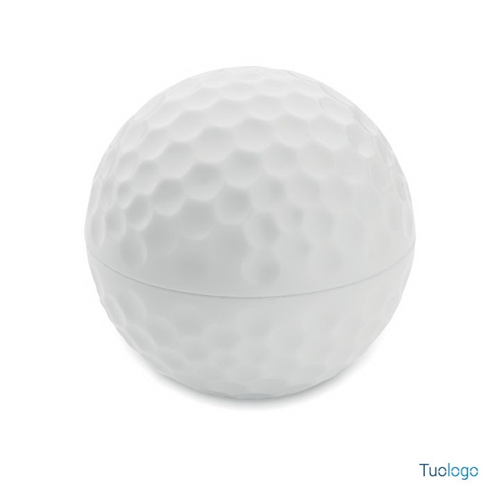 Burrocacao golf Arielli. Balsamo labbra in ABS a forma di pallina da golf. SPF10. Gusto: Vaniglia. Dimensioni: diam cm 3,5.