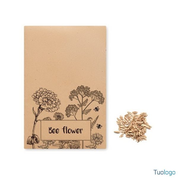 Busta semi fiori misti per api Triora. Busta in carta kraft con selezione di semi adatti per attirare le api. Made in EU. Dimensioni: cm 10,5x6,5.