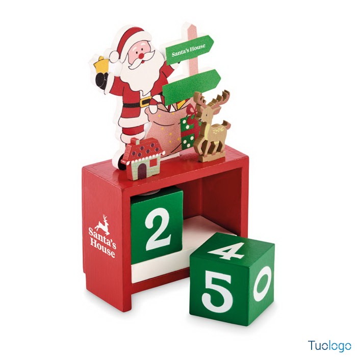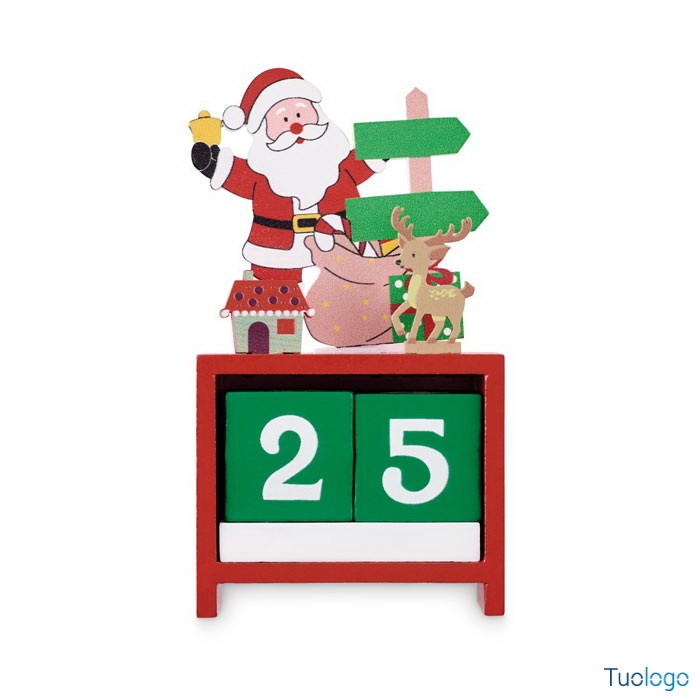 Calendario avvento natalizio Salary. Calendario avvento da tavolo tema Natale. In legno. Dimensioni: 13,4x3,4x7,3 cm