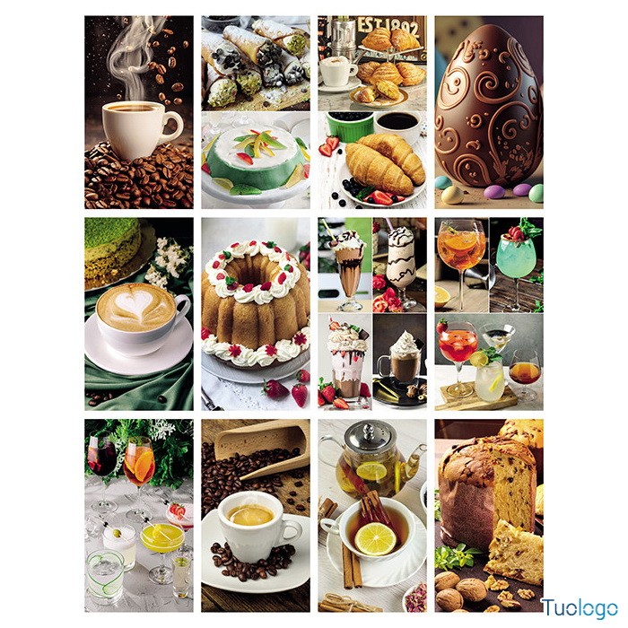 Calendario da muro Caffè e Bar. Mensile 12 fogli, carta patinata 70 gr, testata termosaldata, festività internazionali. Ricette e curiosità sul retro di ogni pagina. Il prezzo include la stampa a un colore. Dimensioni: cm 30x47.