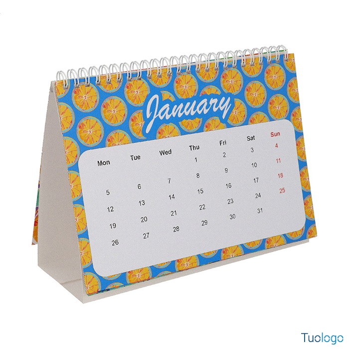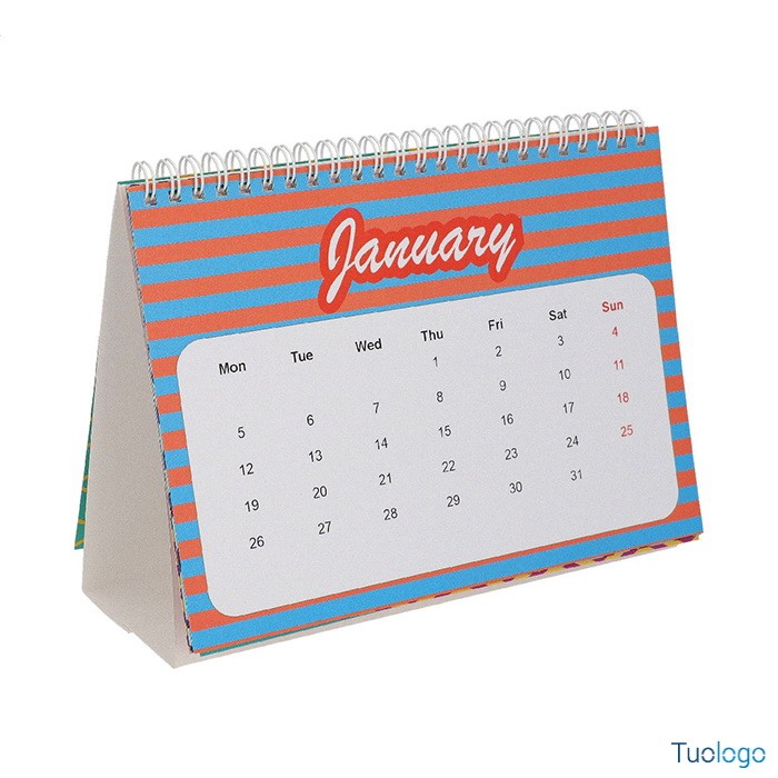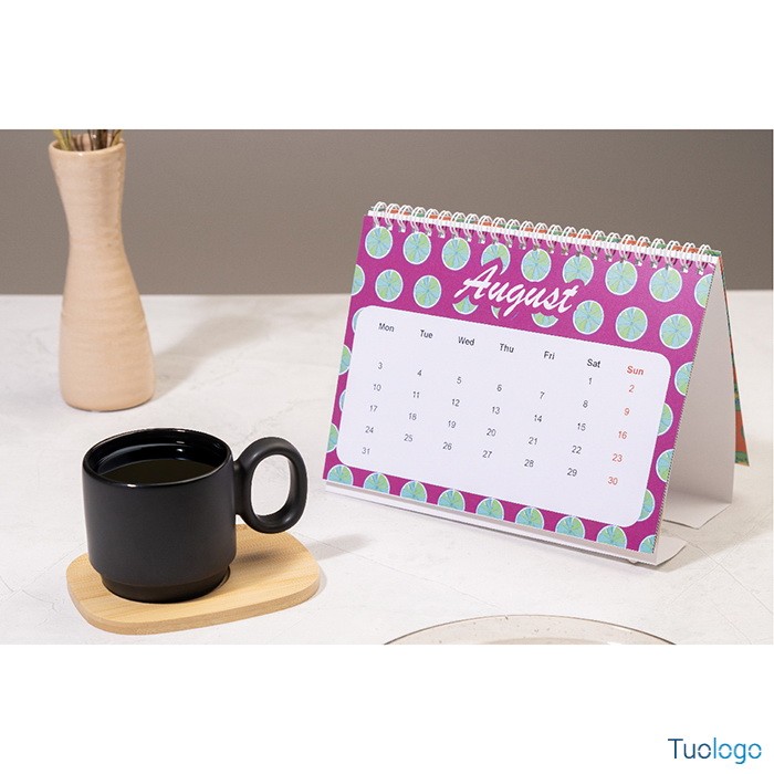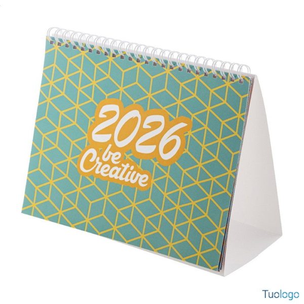 Calendario Fraser. Calendario da tavolo 6 fogli a spirale da scrivania, personalizzabile con grafica a colori e copertina. Il costo comprende la stampa digitale su tutte le pagine. Dimensioni: cm 21x15x8.
