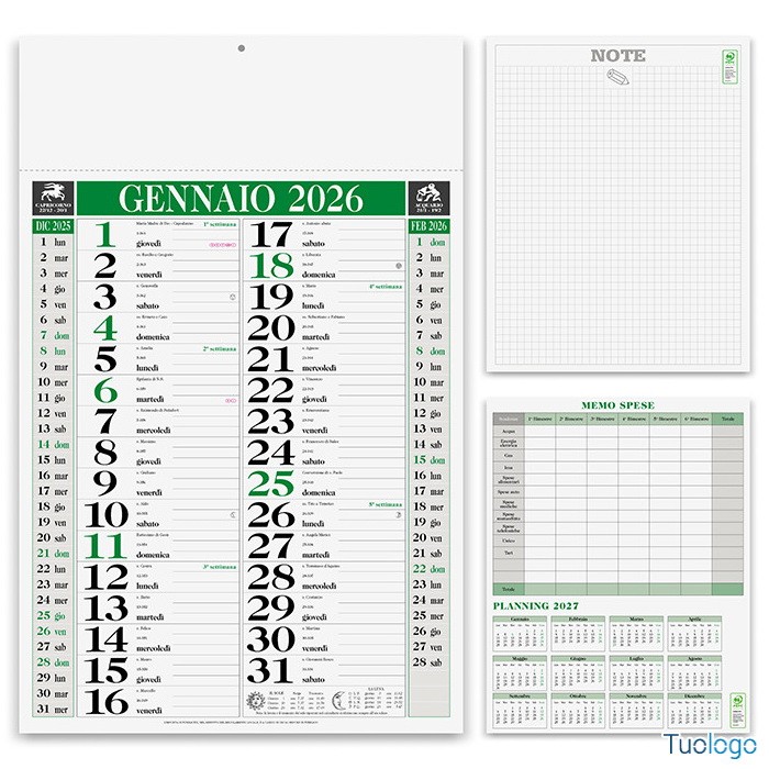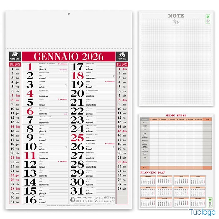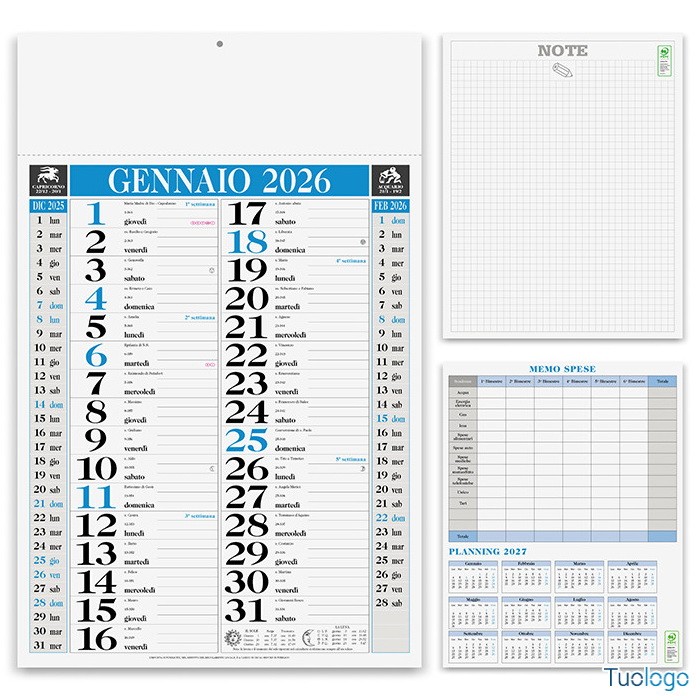 Calendario Olandese Classic. Mensile 12 fogli, carta patinata 70 gr, testata termosaldata, festività internazionali. Il prezzo include la stampa a un colore. Dimensioni: cm 30x47.