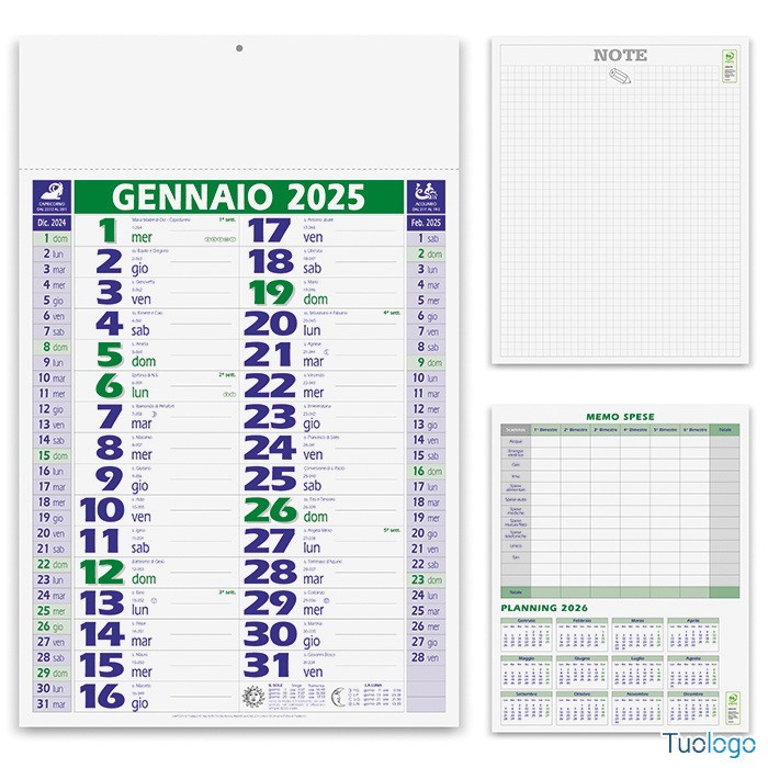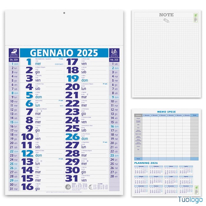 Calendario Olandese Lusaka. Mensile 12 fogli, carta patinata 70 gr, testata termosaldata, festività internazionali. Il prezzo include la stampa a un colore. Dimensioni: cm 30x47.