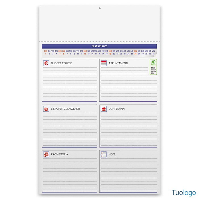 Calendario Olandese Sweden. Mensile 12 fogli, carta patinata 70 gr, testata termosaldata, festività internazionali, 1 colore diverso per ogni mese. Il prezzo include la stampa a un colore. Dimensioni: cm 30x47.