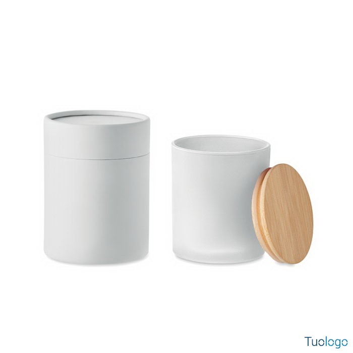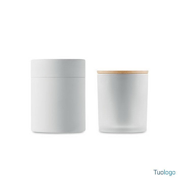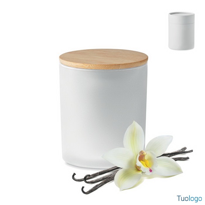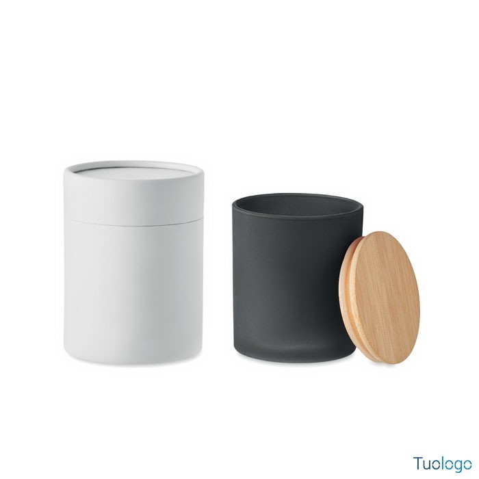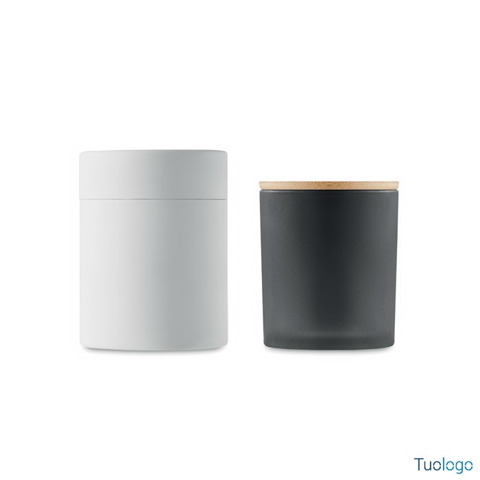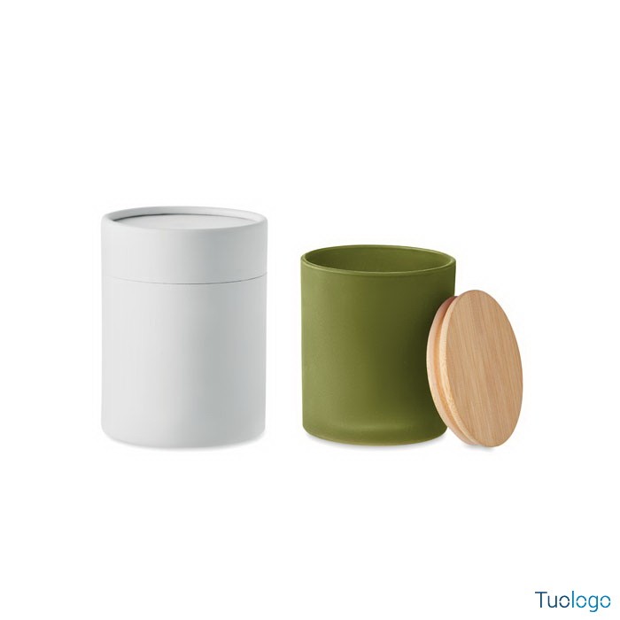 Candela cera vegetale small Merea. Di cera vegetale a cannella, vaniglia, legno di sandalo o gelsomino in barattolo di vetro opaco con coperchio di bamboo. 120 gr. Durata candela: 20 ore. Dimensioni: cm 8,5x8,5x11. Non contiene paraffina. In scatola regalo in tubo di carta.