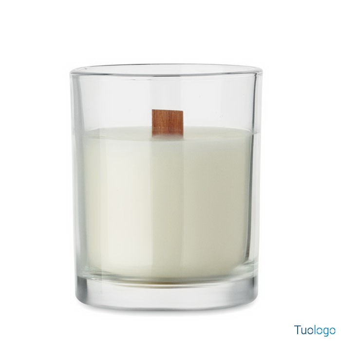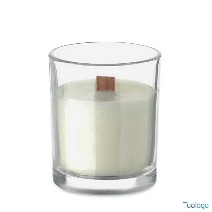 Candela in cera vegetale Dale. Candela in cera vegetale profumata alla vaniglia da 80 gr in vetro con stoppino in legno. Tempo di combustione 14 ore. Dimensioni: 6,1x6,1x7,3 cm.