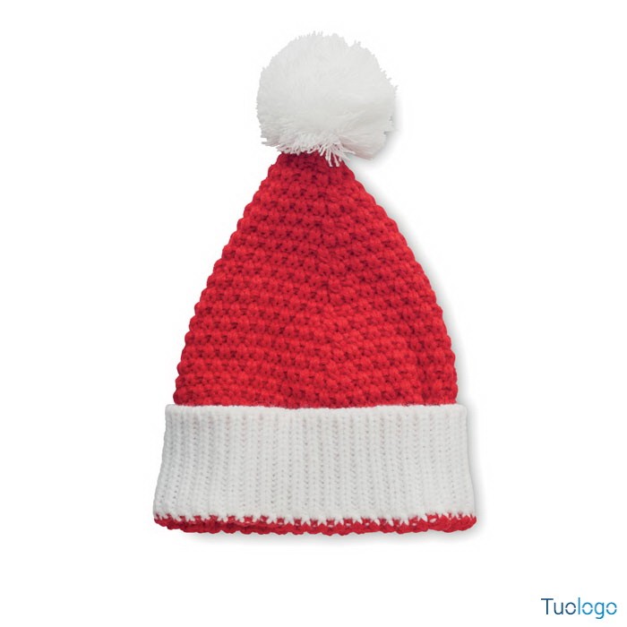 Cappello Natale con pon pon. Berretto natalizio, lavorato a maglia con fascia e pon pon in morbido acrilico elasticizzato. Dimensioni: cm 20x23.