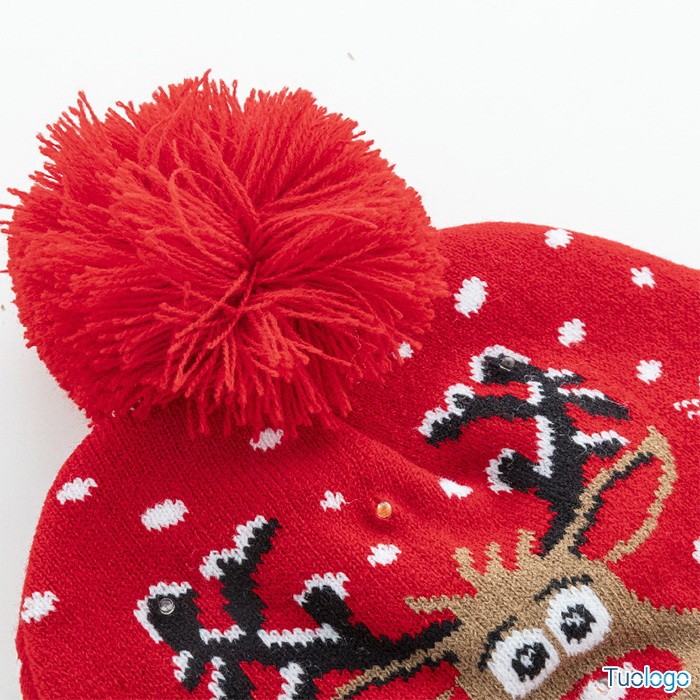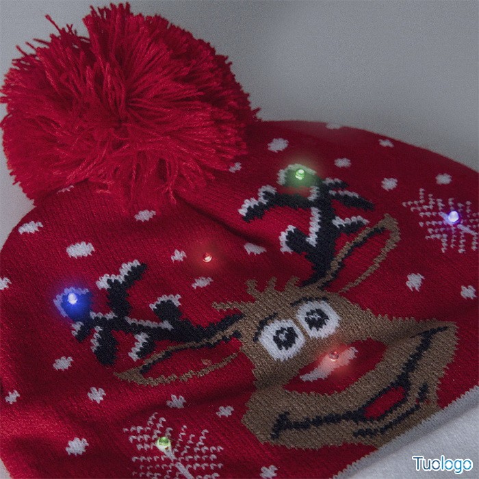Cappello natalizio Gregiol. Cappello natalizio in acrilico lavorato a maglia con 6 luci LED 3 modalità di illuminazione, fascia e pompon. Fornito con batteria a bottone. Dimensioni: cm 22x22.
