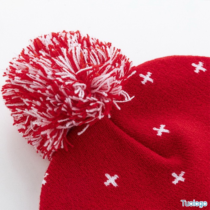 Cappello natalizio Qyz. Cappello natalizio lavorato a maglia in acrilico con fascia e pompon. Dimensioni: cm 22x22.