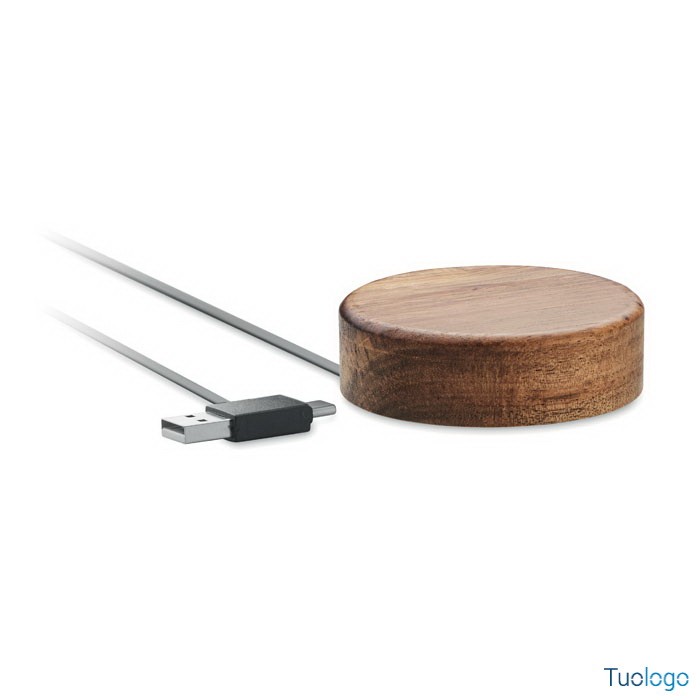 Caricatore wireless Coggia. Caricatore wireless in legno di acacia con cavo retrattile. Uscita: DC 9V 1,67A 15W. Compatibile con dispositivi abilitati QI come gli ultimi Android, iPhone. Dimensioni: diam cm 7,3x2,1. Output: DC 5V/0.8A . Compatibile con tutti gli smartphone che supportano la ricarica wireless.