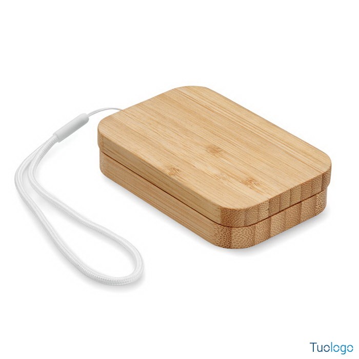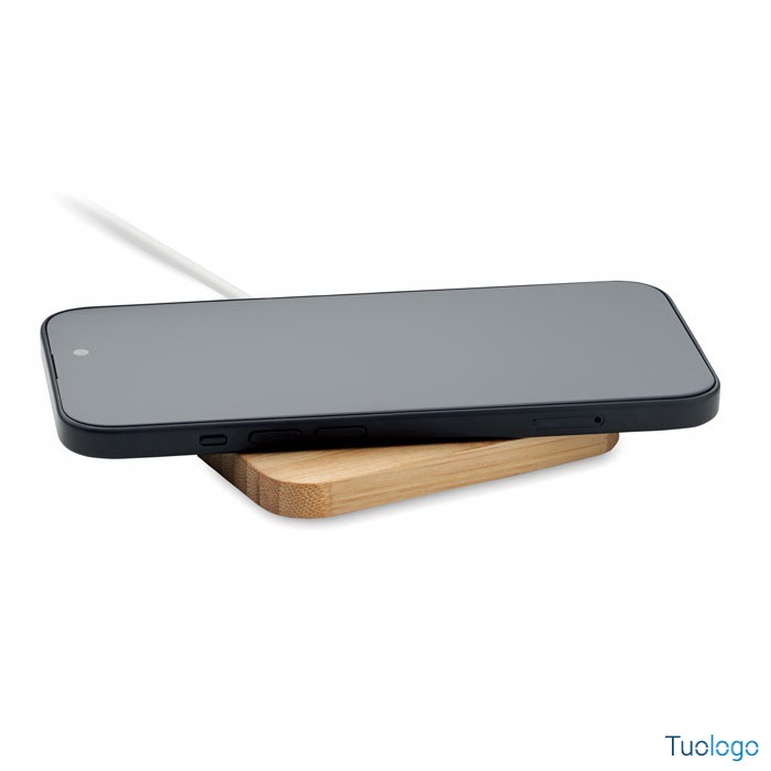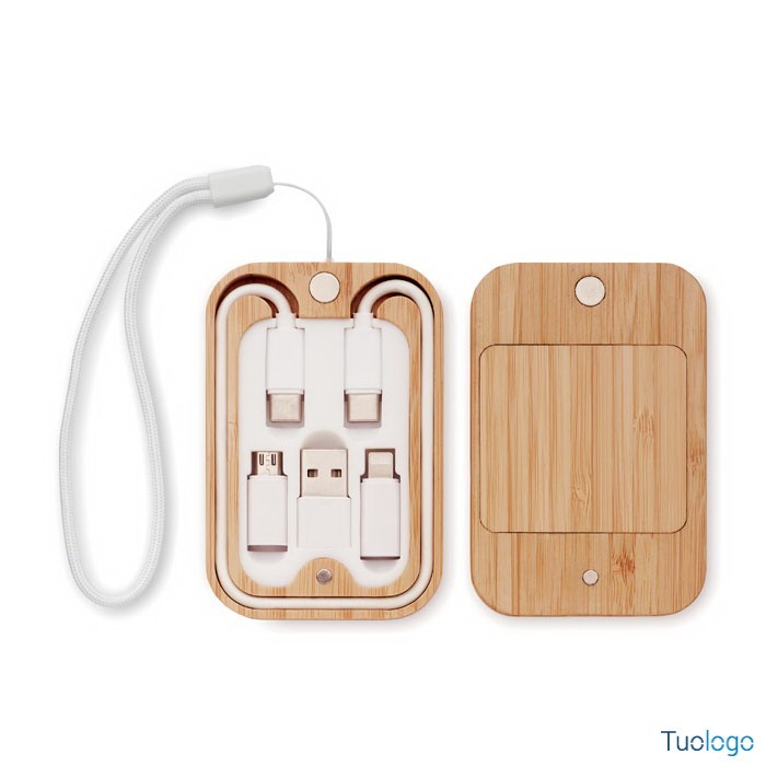 Caricatore wireless con cavo di ricarica Bilac. Caricatore wireless da 15W con cavo di ricarica 3-in-1 con connettori assortiti. Presentato in una scatola di bamboo con chiusura magnetica e cinturino. Dimensioni: cm 9x6x1,9.