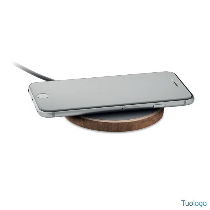 Caricatore wireless Lumio. Caricatore wireless in legno di acacia e PU riciclato. Uscita: DC 9V1.67A 15W. Compatibile con tutti i dispositivi abilitati QI come gli ultimi Android, iPhone Dimensioni: diam cm 9,1x9. Compatibile con tutti gli smartphone che supportano la ricarica wireless.