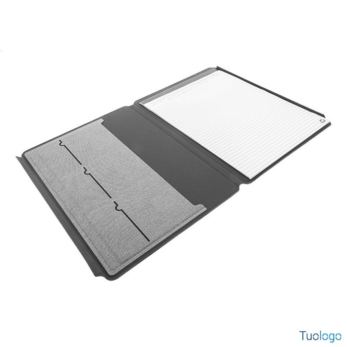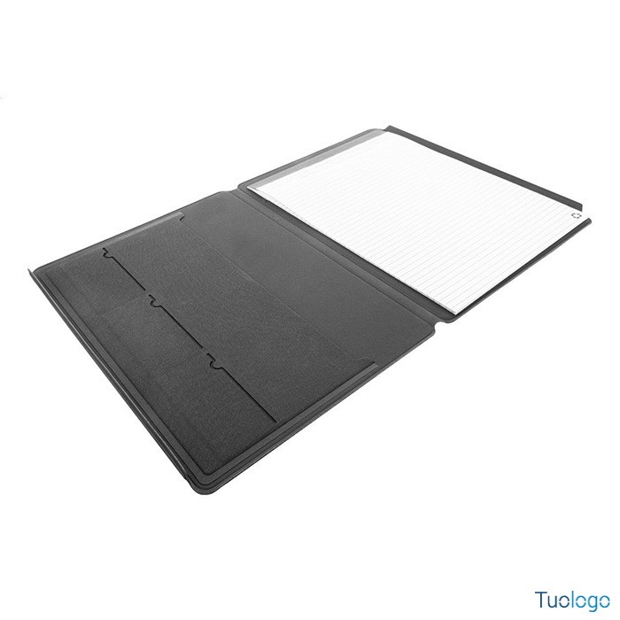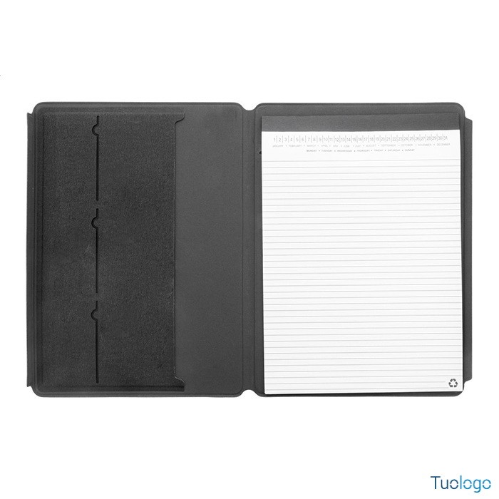 Cartella portadocumenti in pelle Aola. Cartella portadocumenti nel formato A4 in pelle riciclata,tasche organizer interne,blocco note da 20 fogli in carta riciclata a righe e chiusura magnetica. Dimensioni: diam cm 22,5×31×1,5.