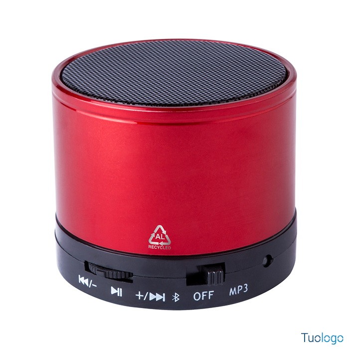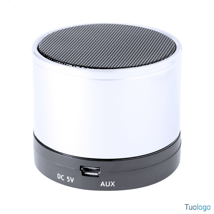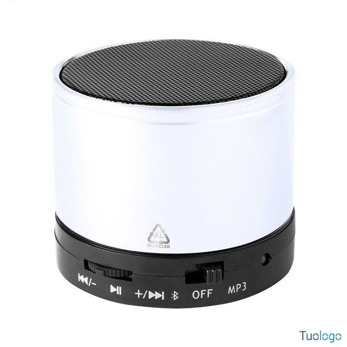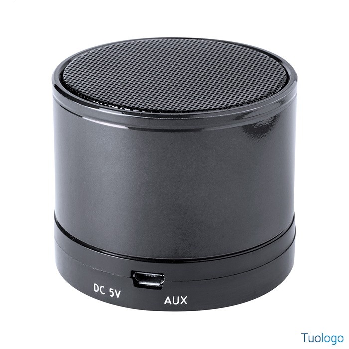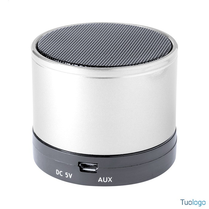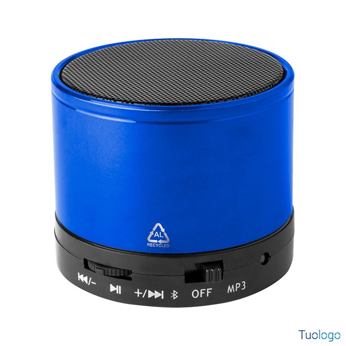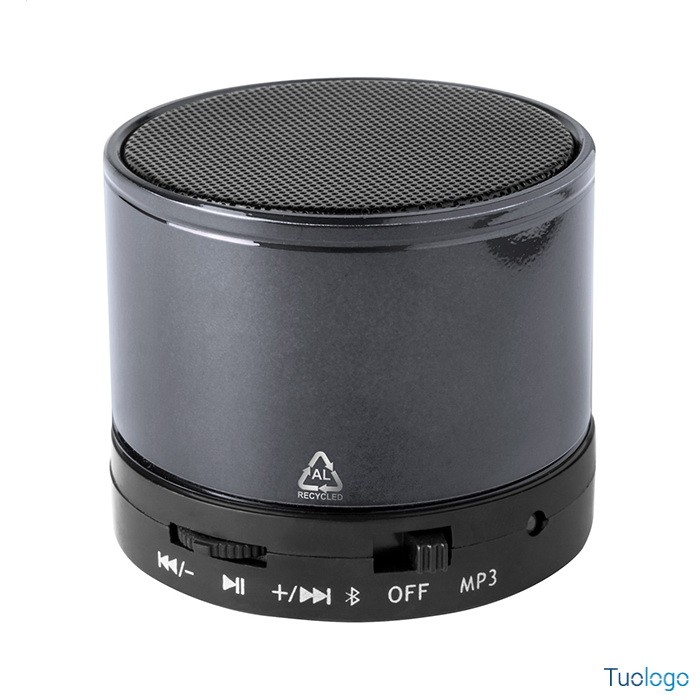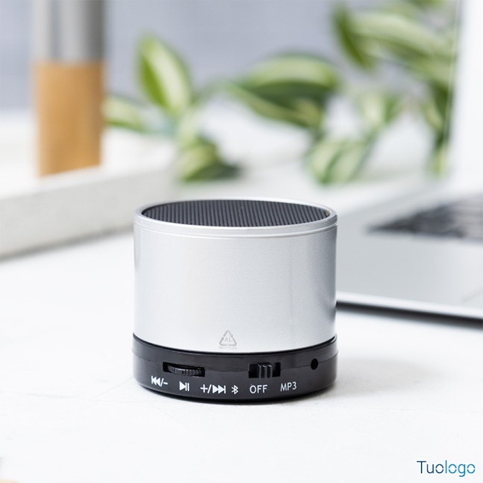 Cassa bluetooth Botar. Cassa bluetooth in alluminio ed ABS riciclato, con radio, lettore MP3, funzione di chiamata in vivavoce e batteria ricaricabile integrata. Cavi inclusi. Dimensioni: diam cm 5,9x5.