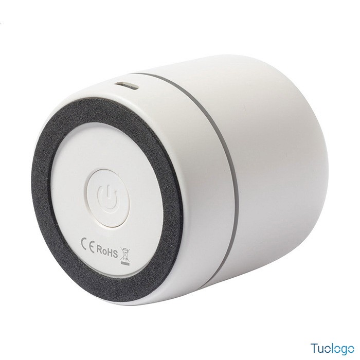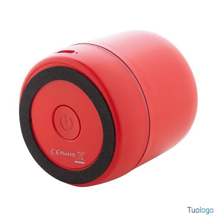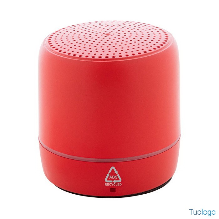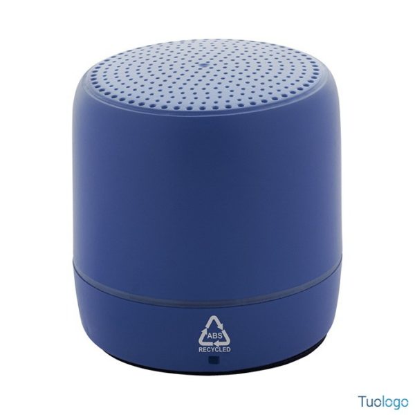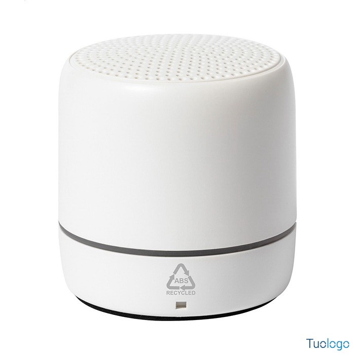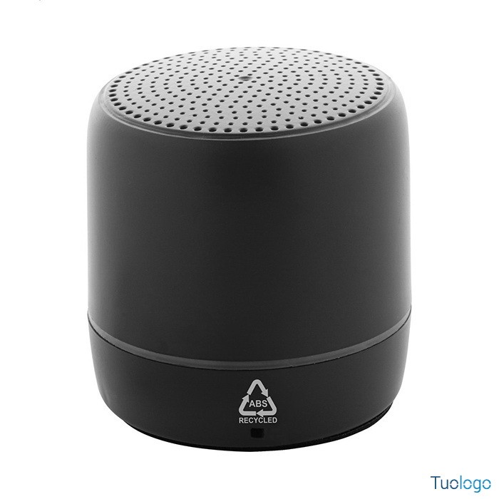 Cassa bluetooth in ABS Isara. Cassa bluetooth in ABS riciclato con funzione di chiamata in vivavoce e batteria ricaricabile incorporata. Incluso il cavo di ricarica USB. Dimensioni: diam cm 6,2×6,4.