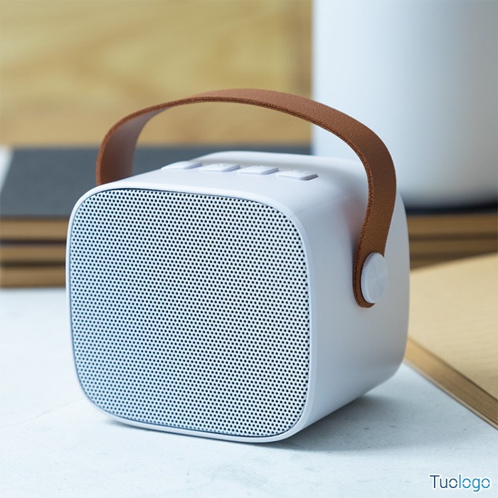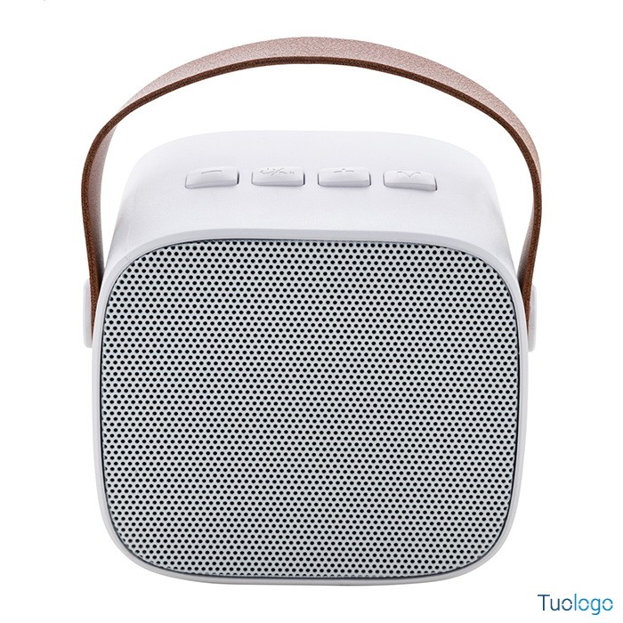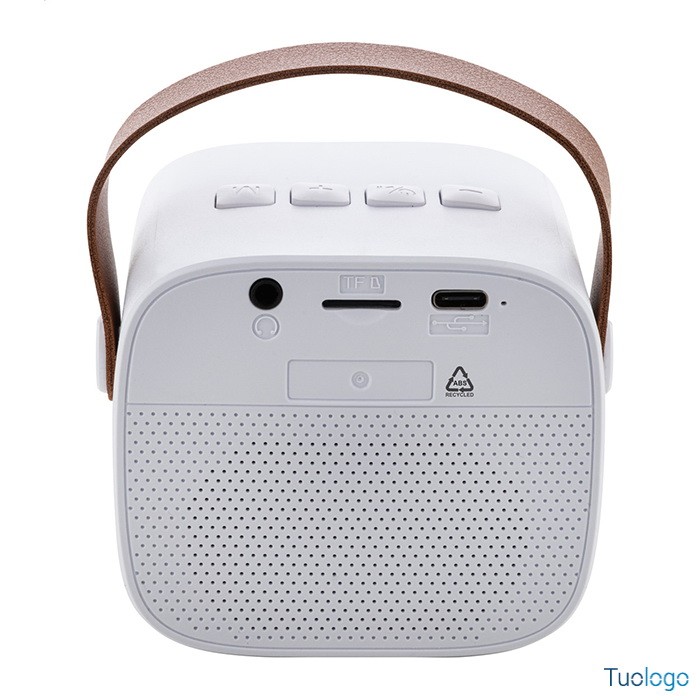 Cassa bluetooth in ABS Jaru. Cassa bluetooth in ABS riciclato con cinturino in pelle PU e batteria ricaricabile integrata 1200 mAh. Fornita con cavo di ricarica USB. Dimensioni: cm 9×6,5×7,6.