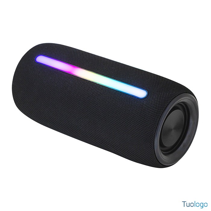 Cassa bluetooth Weam. Cassa bluetooth rivestita in tessuto di poliestere con 2 altoparlanti, funzione di chiamata in vivavoce,batteria ricaricabile integrata,luce LED multicolore. Dimensioni: diam cm 8,7×18,7.