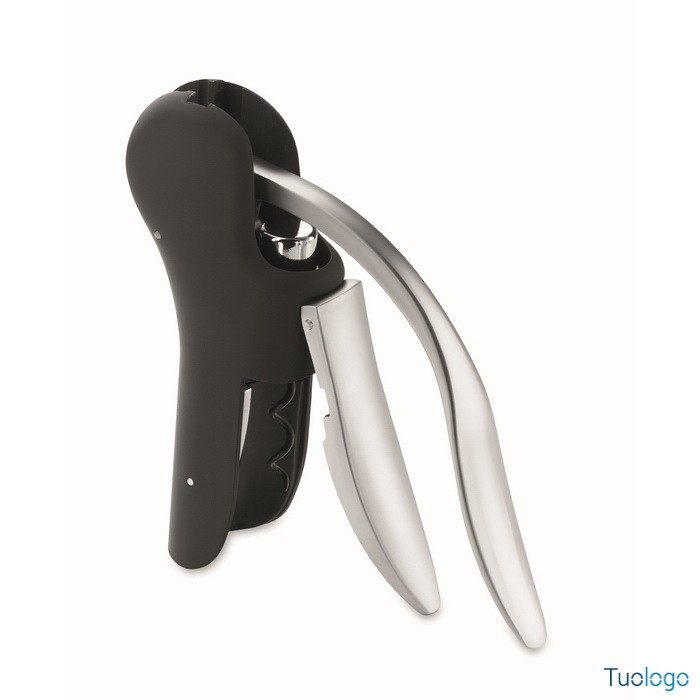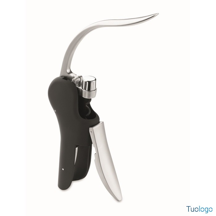 Cavatappi Corzo. Cavatappi manuale a leva in ABS e finitura gommata. Dimensioni: cm 15X3X16.