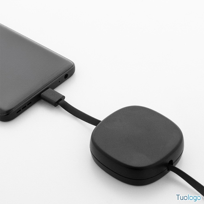 Cavo di ricarica Lop. Cavo di ricarica telescopico da USB-C a USB-C in ABS riciclato. Supporta la ricarica rapida da 60 W PD. Dimensioni: cm 5x9,5x1,5.