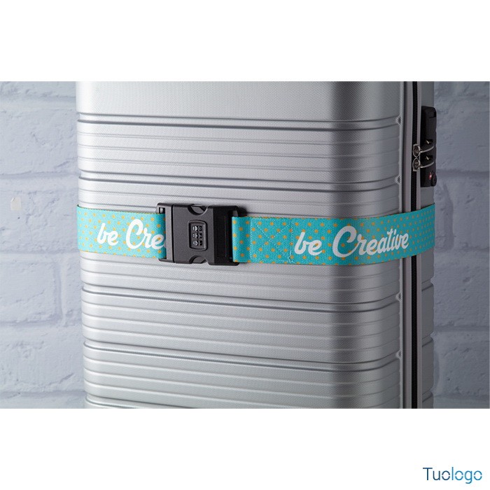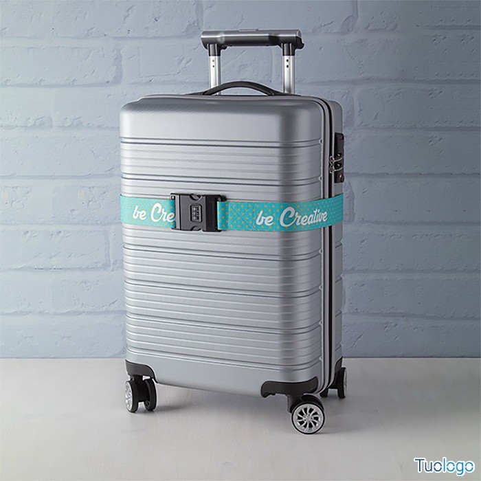 Cintura bagaglio Chaitén. In poliestere. Regolabile con lucchetto a combinazione a 3 cifre. I prezzi includono la stampa in quadricromia su entrambi i lati. Dimensioni: cm 158x5.