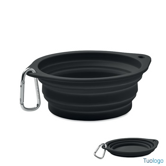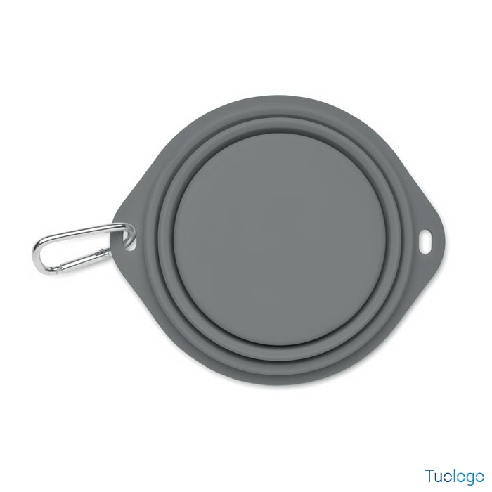 Ciotola portatile pieghevole in silicone Merida. Ciotola portatile pieghevole in silicone per bere o mangiare con moschettone. Capacità: 350 ml.Dimensioni: cm 15,3x1,5.