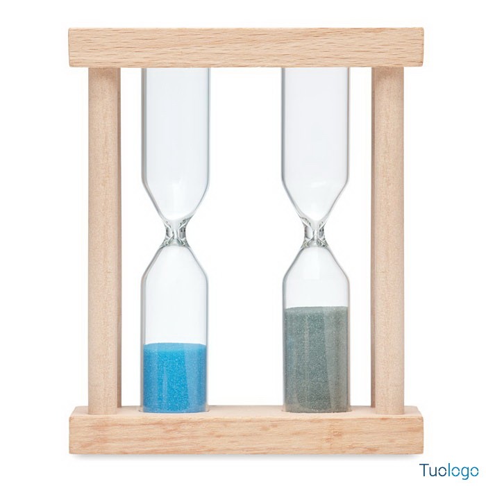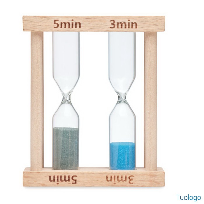 Clessidra doppia Adema. Set di 2 clessidre in legno con 2 timer diversi (circa 3 e 5 minuti).. Dimensioni: cm 7,3x9x3.