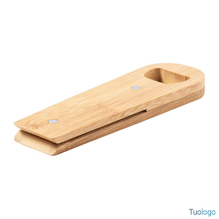 Clip apribottiglie Oura. Clip magnetica in bamboo per la chiusura di sacchetti con apribottiglie. Dimensioni: cm 4,5x14,4x1,2. Essendo un prodotto totalmente naturale il diametro e la superficie delle cannucce potrebbe variare.