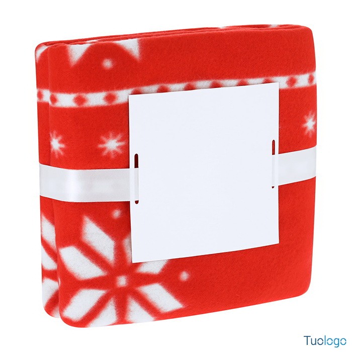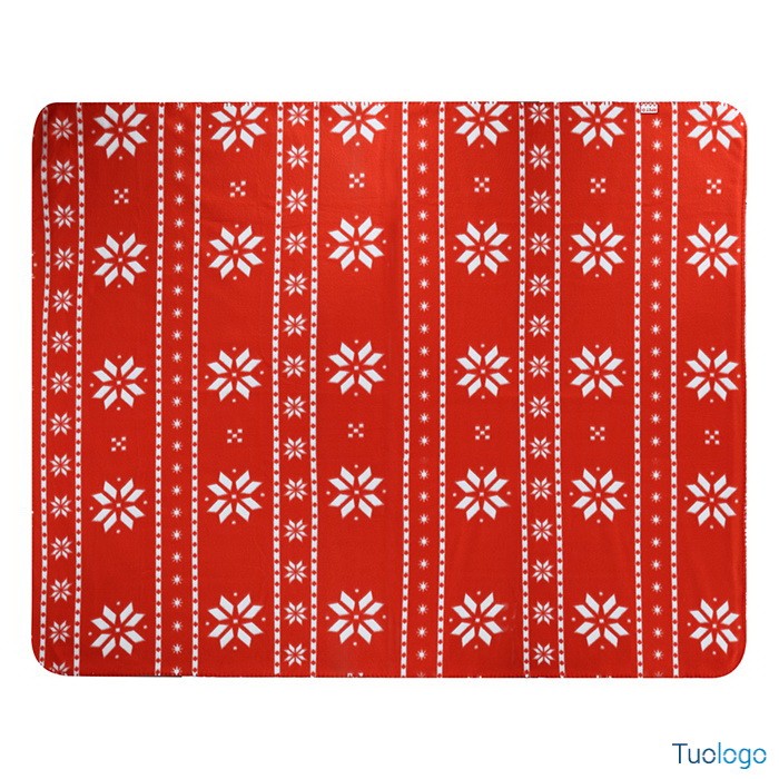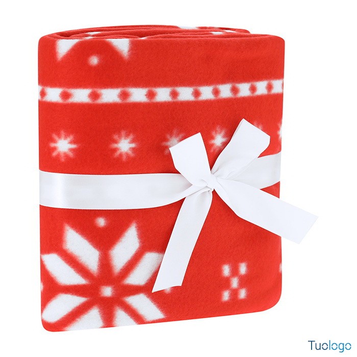 Coperta natalizia Synnai. Coperta natalizia in pile di poliestere RPET 200 g/m2 antipilling. Confezionata con nastro e cartoncino stampabile. Dimensioni: diam cm 160x130.