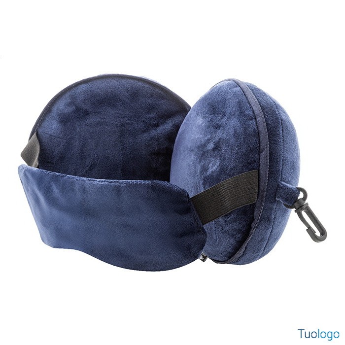 Cuscino da viaggio Dez. Cuscino da viaggio in poliestere RPET con mascherina per gli occhi integrata, elastici ed etichetta RPET. Dimensioni: cm 14,5x10.