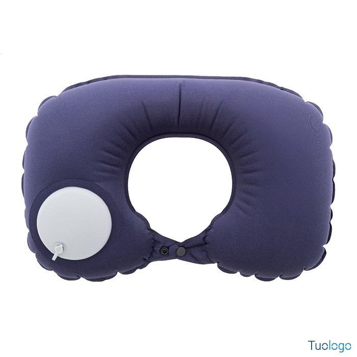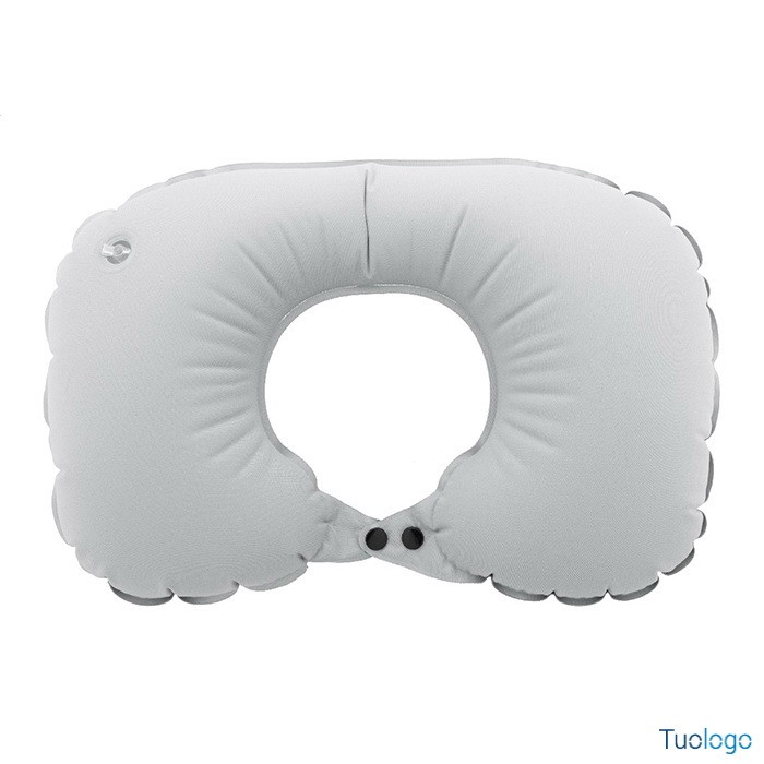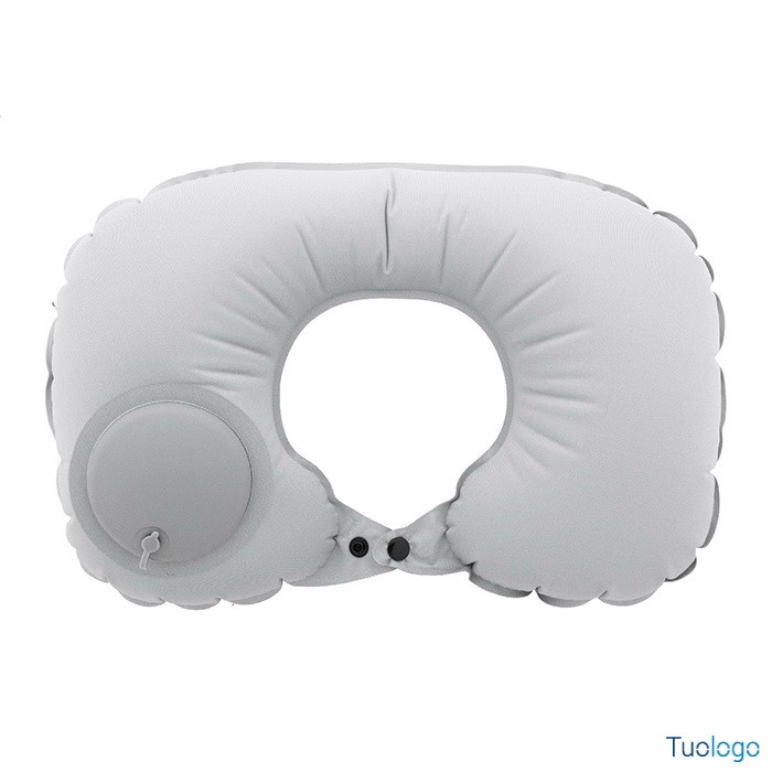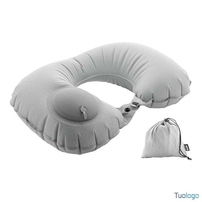 Cuscino da viaggio Tat. Cuscino da viaggio gonfiabile in poliestere RPET con pompa incorporata per un facile gonfiaggio e sgonfiaggio e custodia in tessuto coordinato. Dimensioni: cm 42x27.