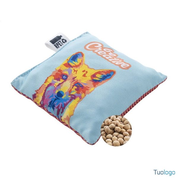 Cuscino Norho. Cuscino termico rivestito in microfibra RPET personalizzabile con grafica stampata in sublimazione su tutta la superficie, imbottito con noccioli di ciliegia. Dimensioni: cm 10x10x2.