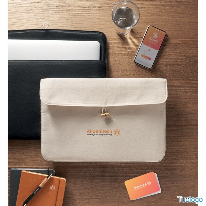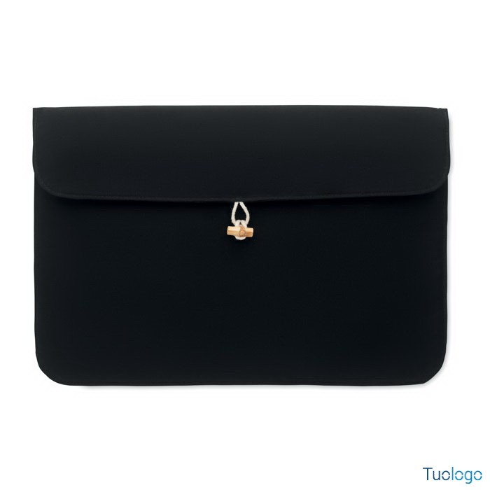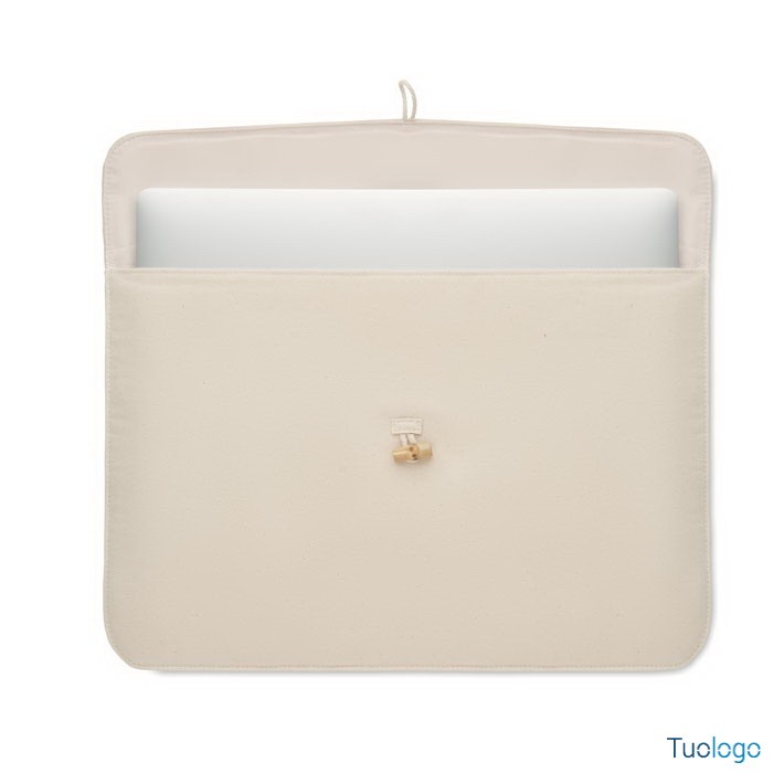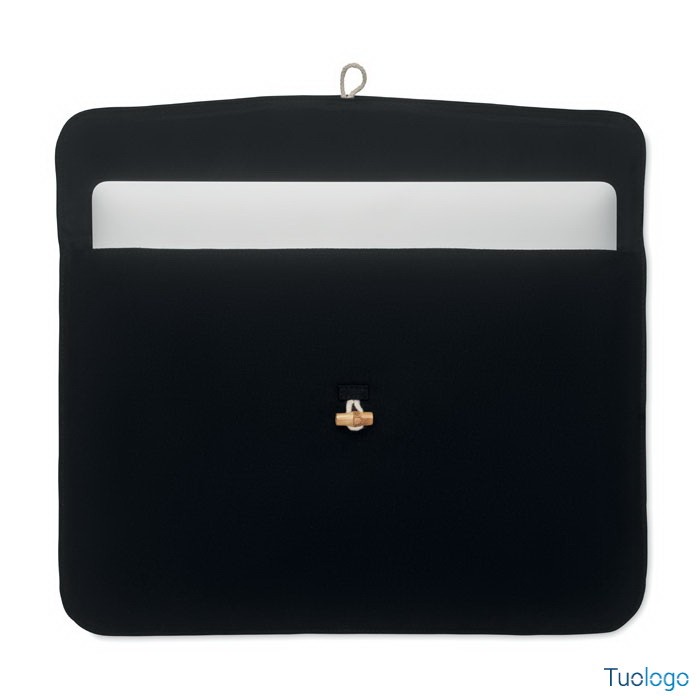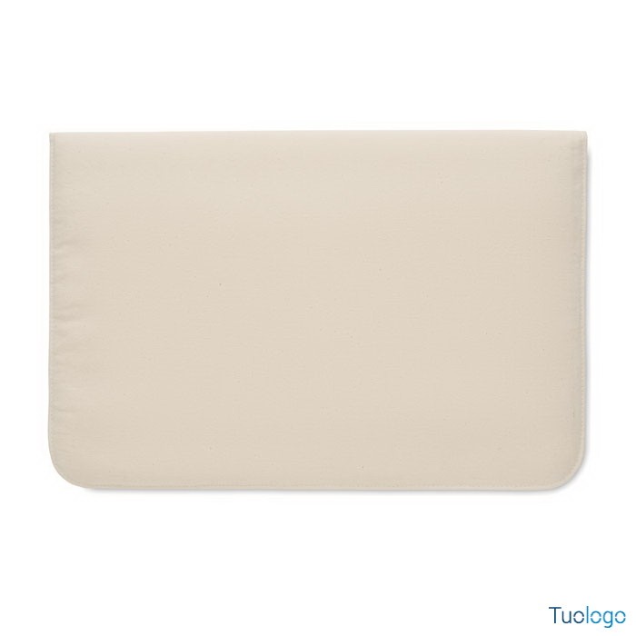Custodia computer 15 Palidano. Custodia imbottita per laptop da 15 pollici in cotone da 220 gr. Fodera interna 120 gr. Chiusura con bottoni in bamboo.Dimensioni: cm 39.5x27.