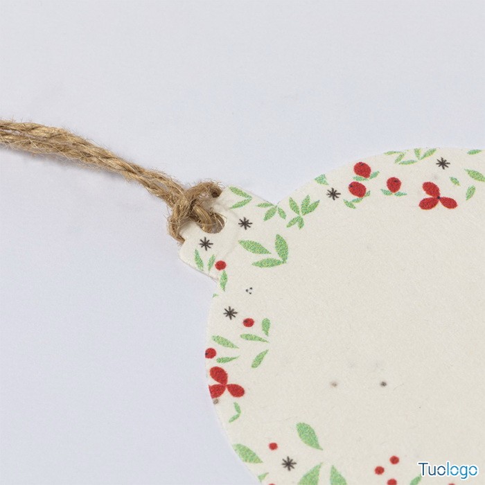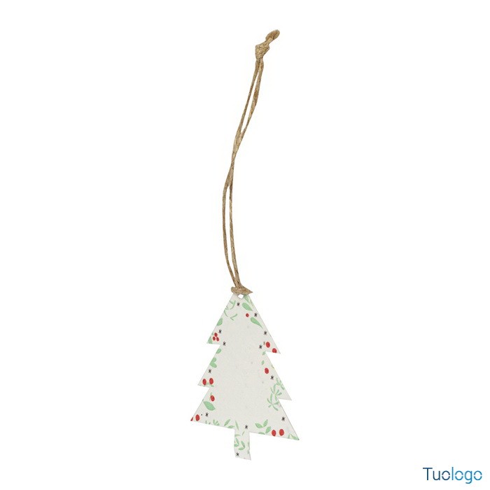 Decorazione natalizia Bustar. Addobbo albero di Natale in carta di semi con filo in iuta. Il rivestimento in carta di semi contiene semi di petunia in colori assortiti. Dimensioni: diam cm 8x7. Stampa a 1 colore inclusa.