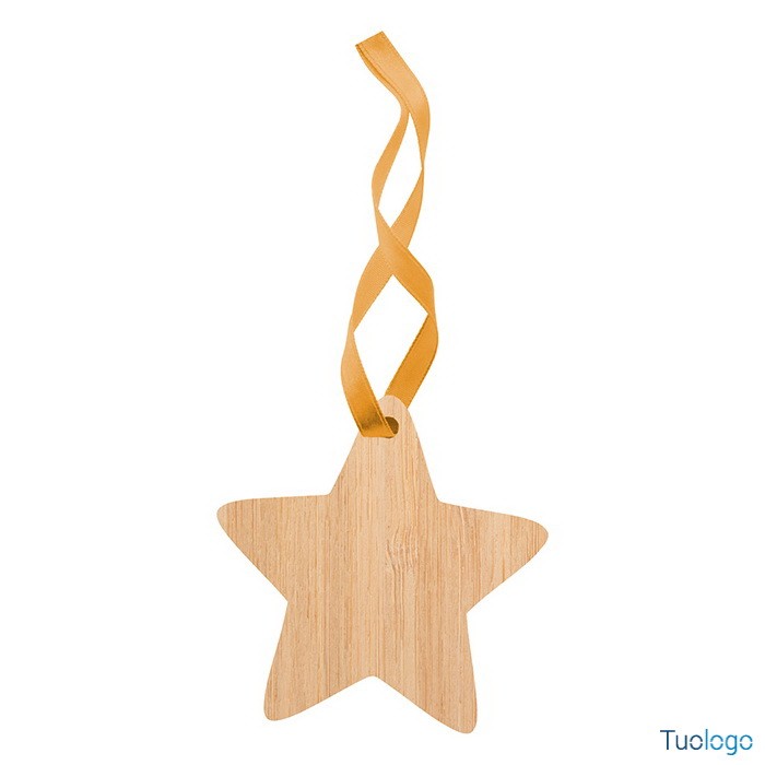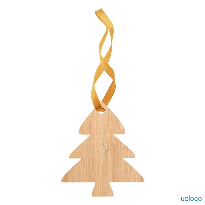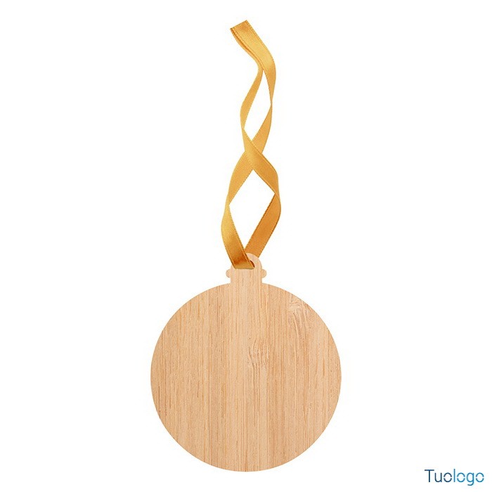 Decorazione natalizia Dalonh. Decorazione per l'albero di Natale in compensato di bambù con nastro dorato. Fornito con nastro separato. Dimensioni: diam cm 7x8x0,3.