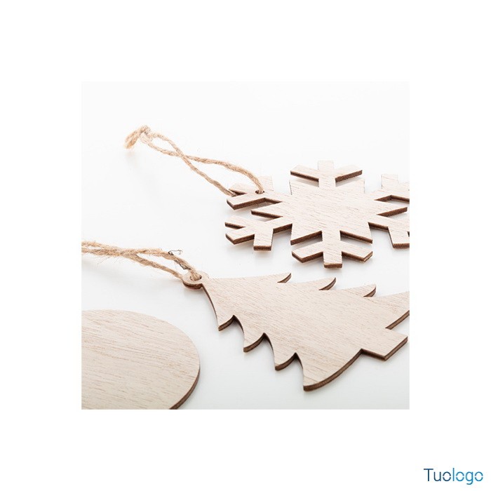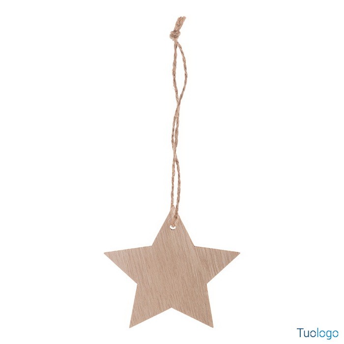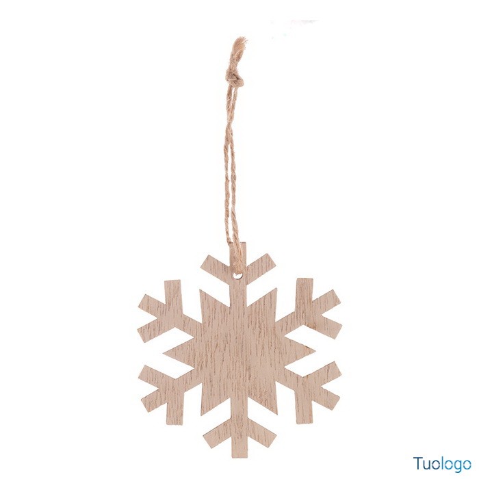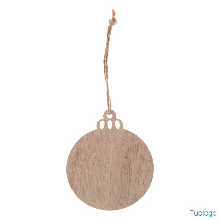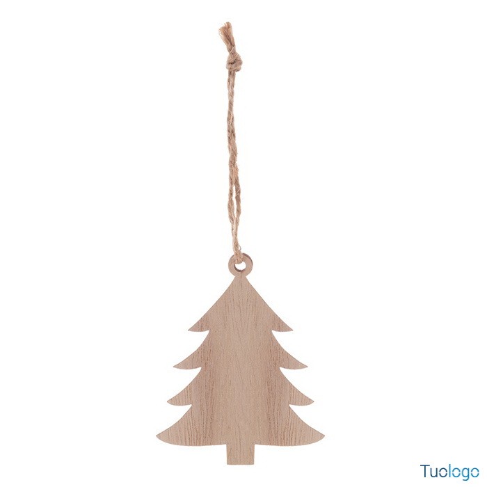 Decorazione natalizia Kisvo. Ornamento per albero di Natale in legno con cordoncino di canapa. Dimensioni: circa cm 6,3x8x0,2.