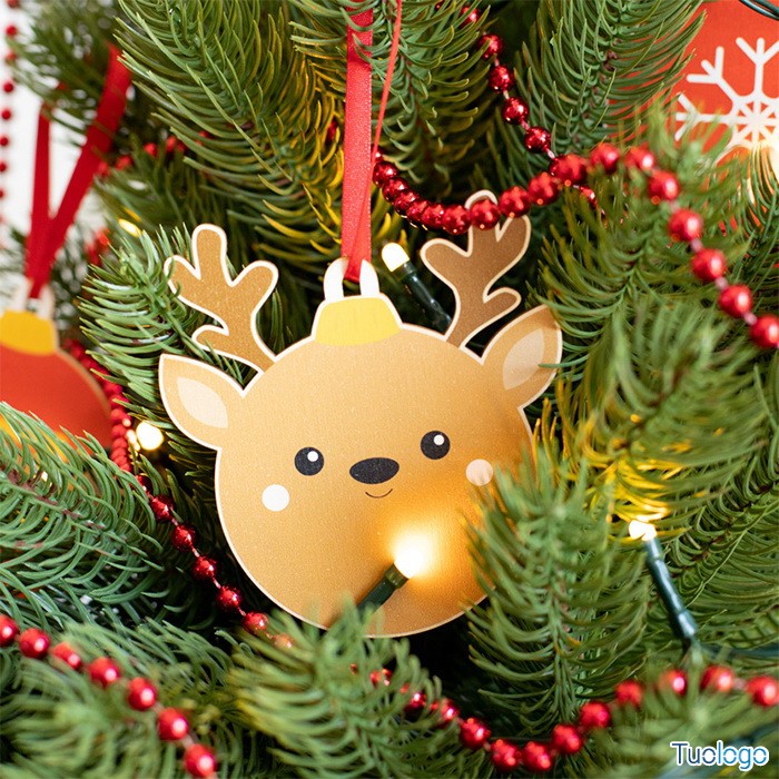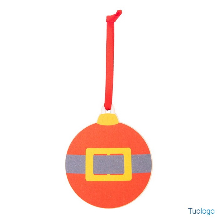 Decorazione natalizia Lascand. Decorazione natalizia in multistrato di betulla, con decorazione natalizia e nastro rosso. Fornita con nastro separato. Dimensioni: diam cm 7,7x9,2x0,3.