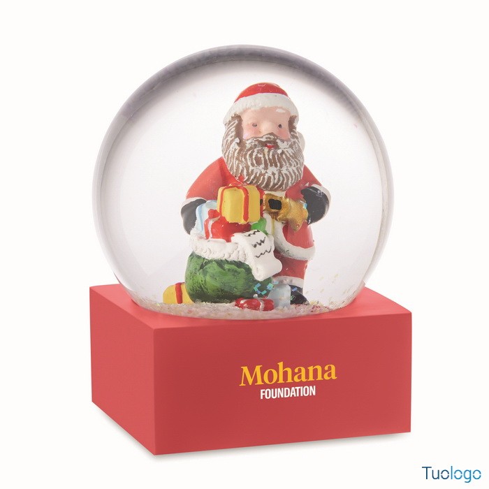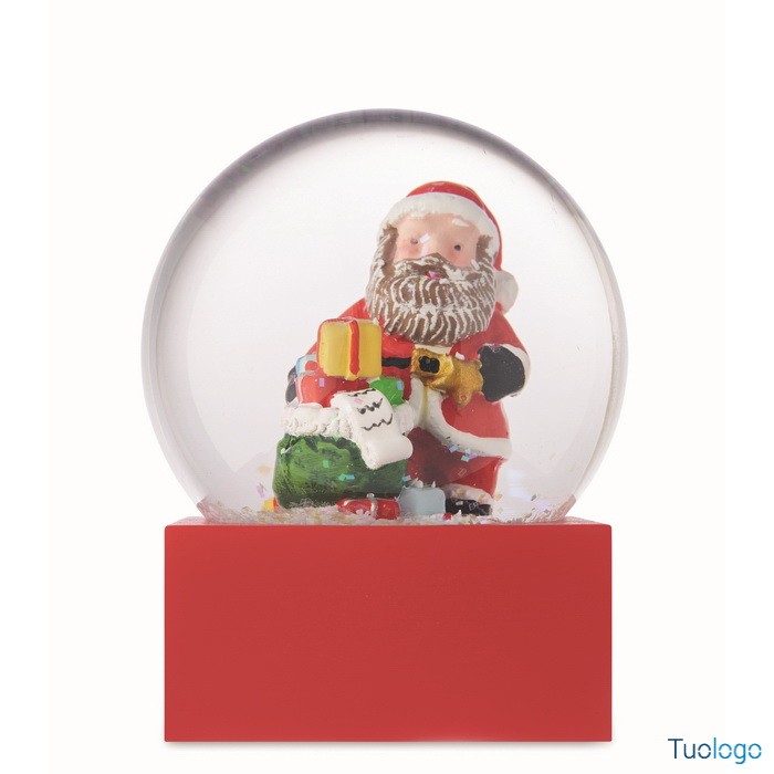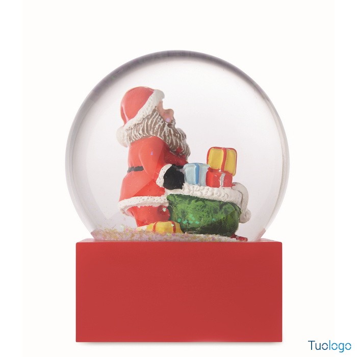 Decorazione natalizia Santiximo. Decorazione natalizia in vetro con palla di neve e base in poliresina. Dimensioni: cm 6,5X6,5X8.