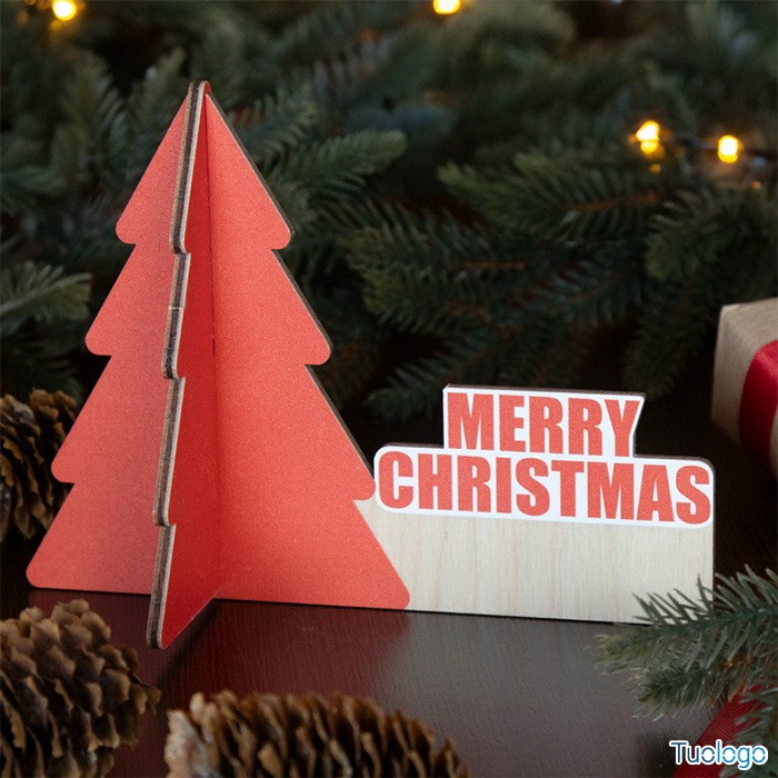 Decorazione natalizia Sunark. Decorazione da scrivania a forma di albero di Natale in compensato di betulla. Fornita in confezione piatta. Dimensioni: diam cm 15,5x11x7,2.
