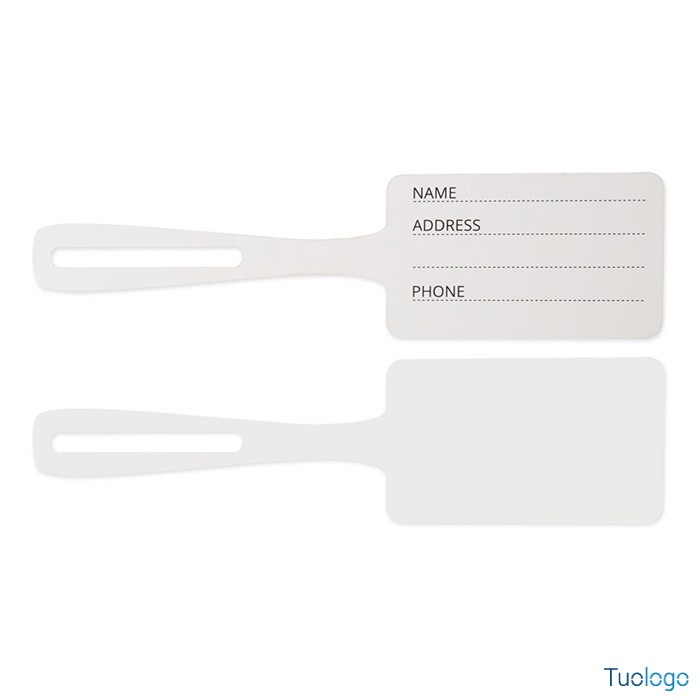 Etichetta bagaglio Yuma. In carta antistrappo, resistente all'acqua. I prezzi includono la stampa in quadricromia sul fronte. Dimensioni: cm 23x6.