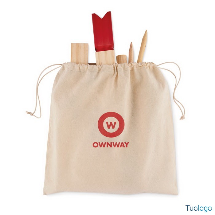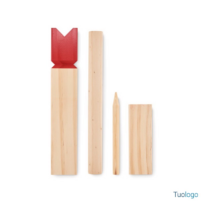 Gioco di lancio Ragusa. In legno di pino, in sacchetto di cotone con cordoncino. Include 10pezzi: 1 bastoncino quadrato, 4 bastoncini appuntiti, 6 bastoncini rotondi e 1 re. Dimensioni: cm 34x3x34.