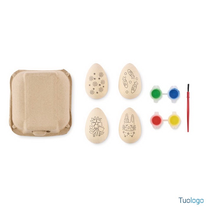 Kit uova in legno con pennello e pigmenti Claro