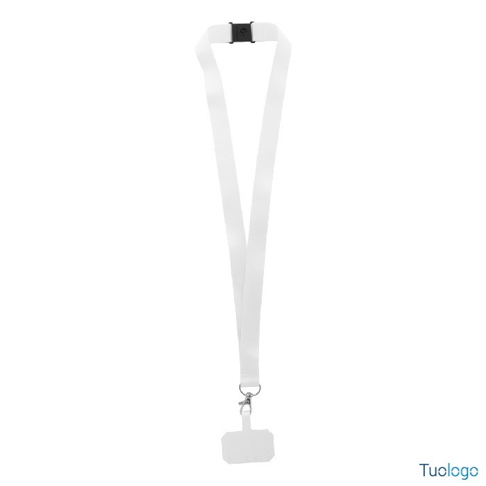 Laccetto da collo smartphone RPET. I prezzi includono la stampa in quadricromia su due lati, moschettone in metallo, sgancio di sicurezza e inserto portacellulare in carta antistrappo stampato. Dimensioni: cm 2x55.