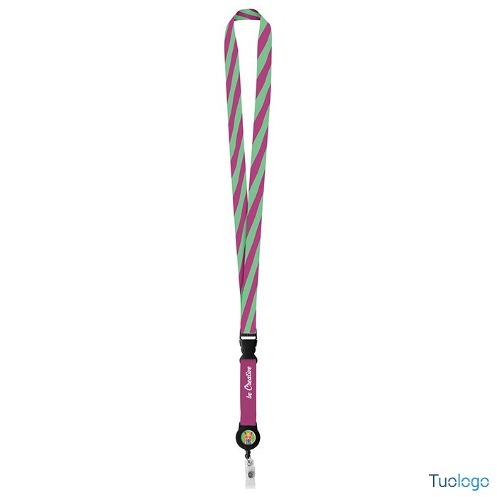 Laccetto portabadge Yoyo Insert. In poliestere liscio. I prezzi includono la stampa in quadricromia su due lati, il laccetto telescopico e l'innesto in plastica nera. Dimensioni: cm 59x2.