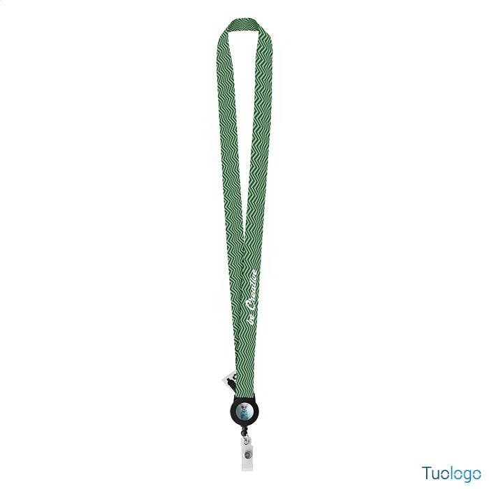 Laccetto portabadge YoYo RPET. Lanyard in RPET personalizzabile, con porta pass telescopico, stampa in sublimazione su entrambi i lati. Dimensioni: cm 47x2.