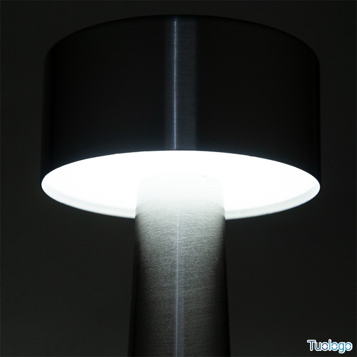 Lampada da tavolo con LED Kolo. In acciaio inox con 24 LED, luminosità regolabile e batteria ricaricabile USB. Modalità di luce calda, naturale e fredda. Cavo di ricarica USB. Dimensioni: diam cm 9,5×21,5.