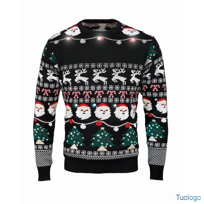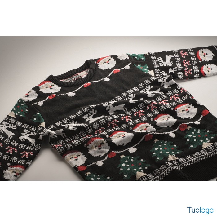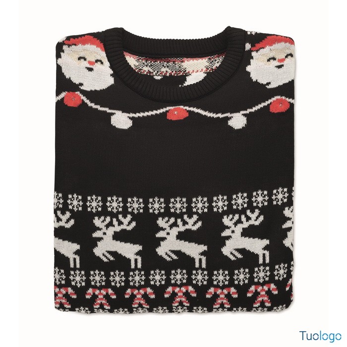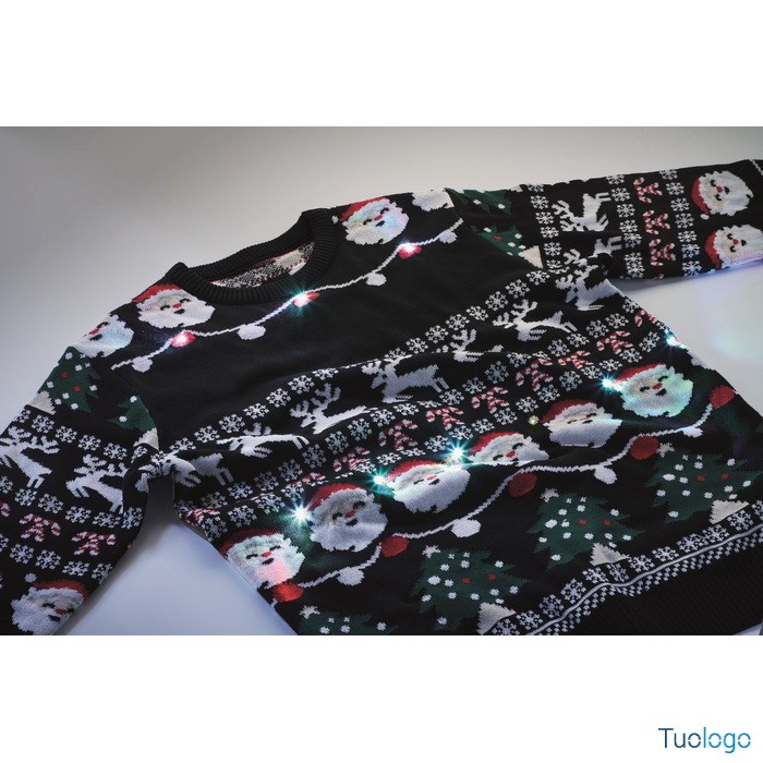 Maglione Misha. Maglione natalizio con 10 luci LED in acrilico. Dimensioni: L/XL. Presentatevi al lavoro o alla cena di Natale in famiglia con stile grazie a questo maglione festivo. Dimensioni: cm 71X55X64.