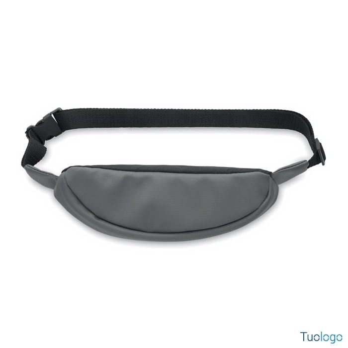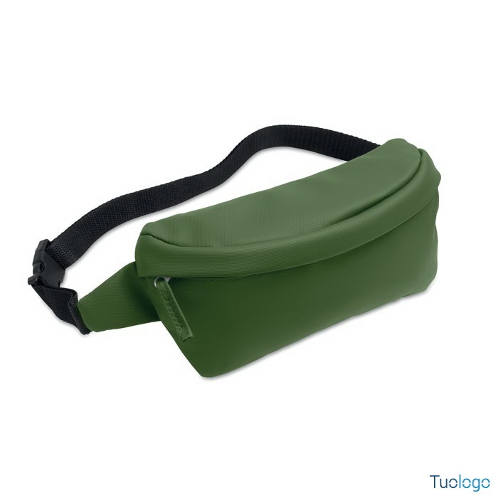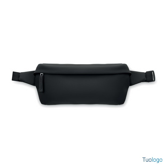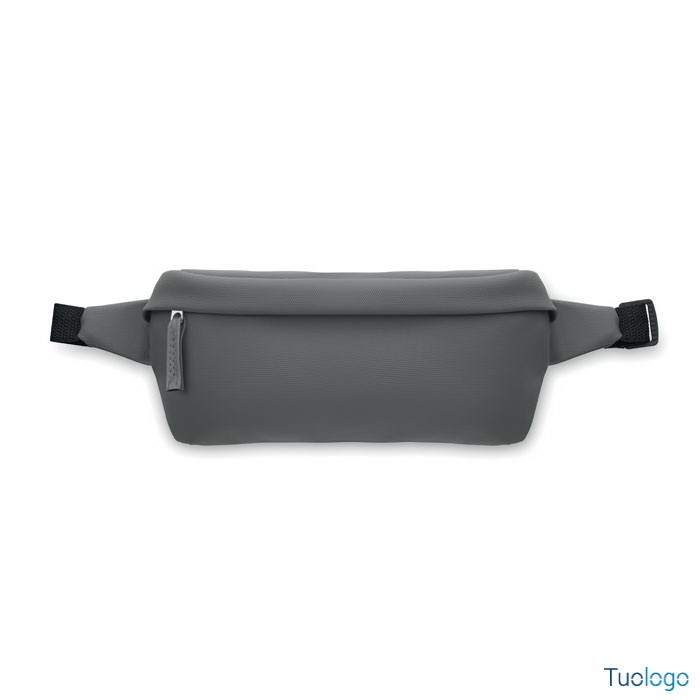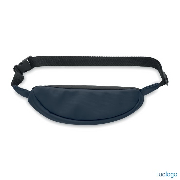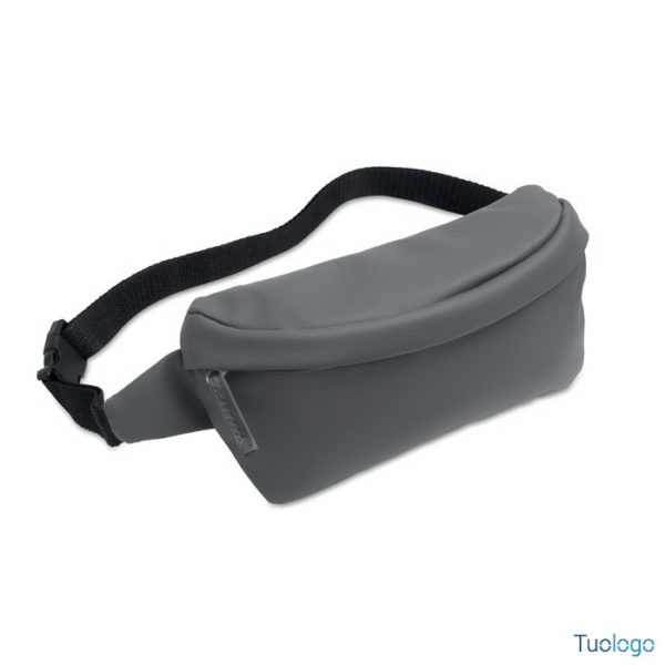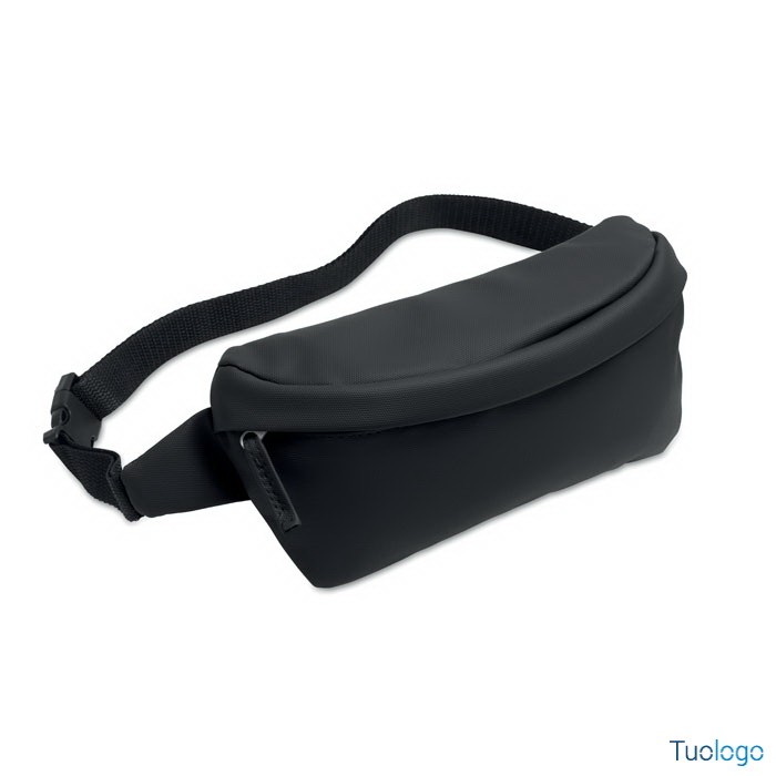 Marsupio in PU Belaga. Marsupio con rivestimento in PU in poliestere 600D RPET, fodera in poliestere 210D RPET e tasca frontale con cerniera. Dimensioni: 26,5x7x12,7 cm.