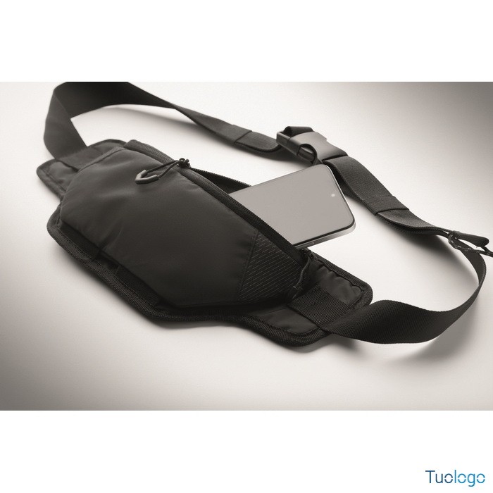 Marsupio Kynio. Marsupio da escursionismo in nylon idrorepellente con fodera in poliestere. Striscia riflettente. Scomparto principale imbottito e apertura con cerniera. Dimensioni: cm 36X6.5X16.