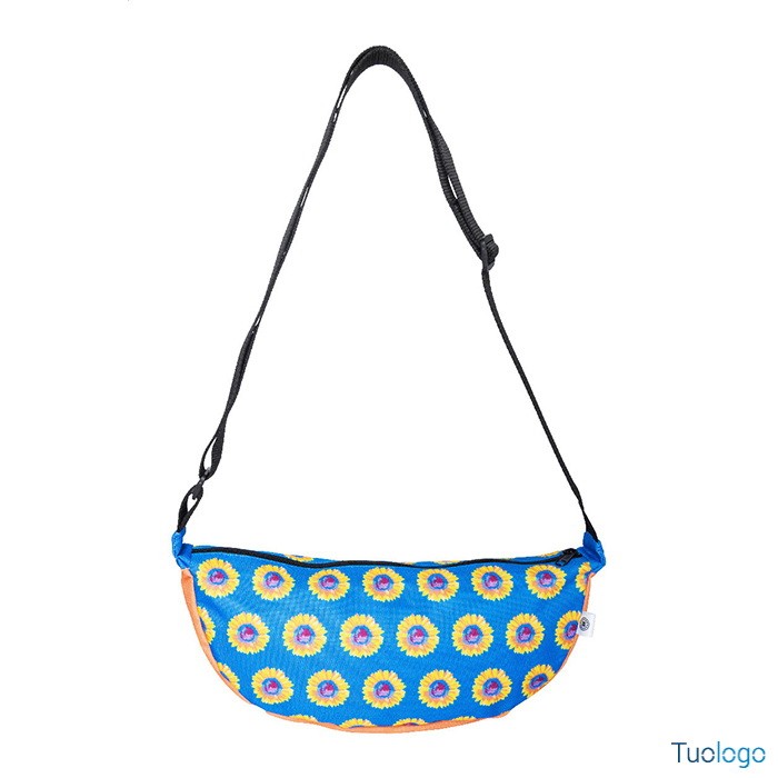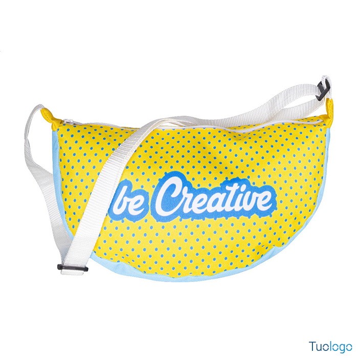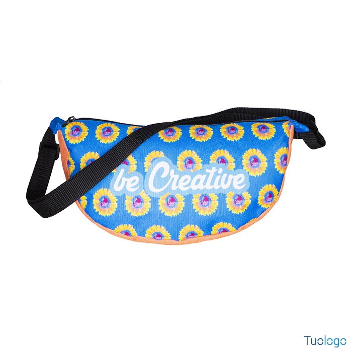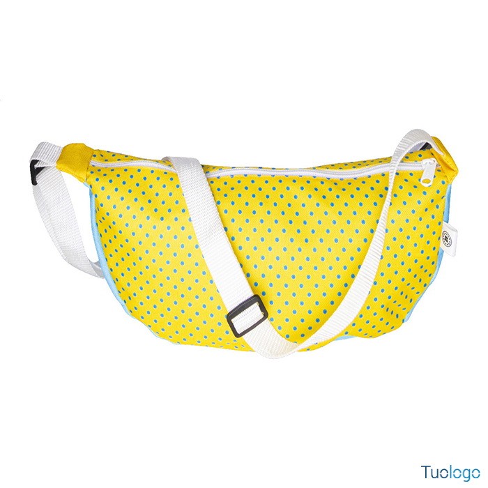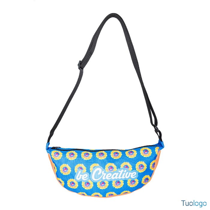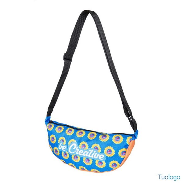 Marsupio Okroy. Marsupio in poliestere 600D RPET, con tracolla regolabile, scomparto con cerniera ed etichetta RPE, personalizzabile con grafica stampata in sublimazione. Dimensioni: cm 29x15,6x10.
